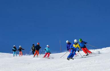 Wir bieten Skiunterricht in Gruppen von 5 bis maximal 10 Personen - in Ausnahmefällen 12 - an. Eine Gruppe setzt sich aus verschiedenen Schülern gleichen Könnens zusammen. Bei weniger als 5 Personen findet der Unterricht nur vormittags statt. Hierfür ist eine Mindestteilnehmerzahl von 3 Schülern Voraussetzung.